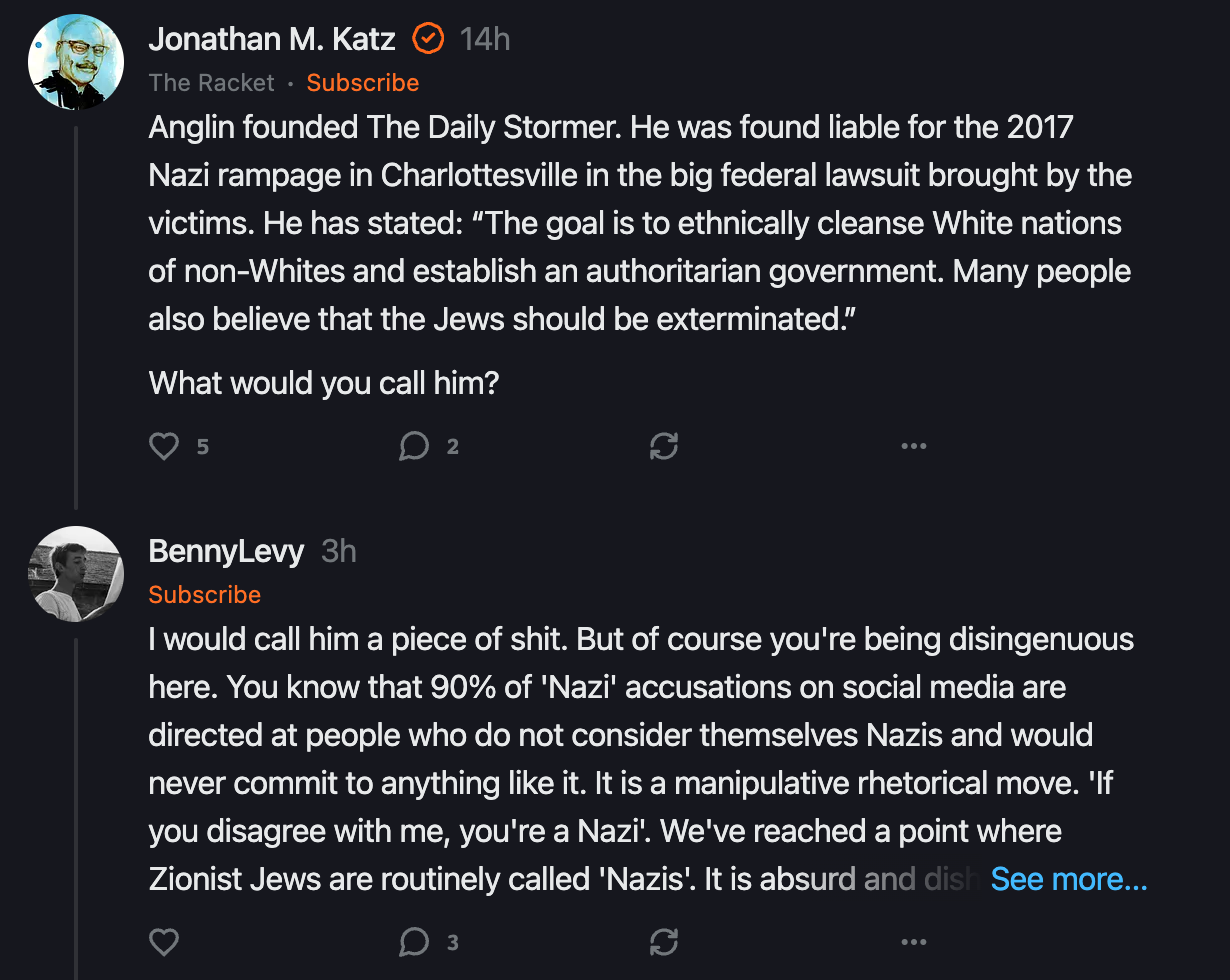 He followed this up by waving his hands about how the platform empowers users, how it will self-police, blahbeddyblobbedybloo. But the actual on the ground experience of Substack Notes has already curdled since its launch. Substack is home to a lot of incredibly loud, and sometimes incredibly vicious writers and readers across the political perspective, hitherto living in their own little ecosystems, and that’s what made it work. Neither the newsletter writers nor their audiences were ever meant to interact. Now, however, they’ve discovered one another on Notes, and very anodyne normal posts are collecting replies about woke ideology and how Andrew Anglin isn’t actually a nazi.